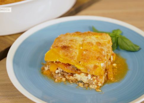 Ligera, sin culpa ni complicaciones: la lasaña sin pasta de calabaza, salchichas y queso fresco es un inventazo que deberías probar sí o sí.